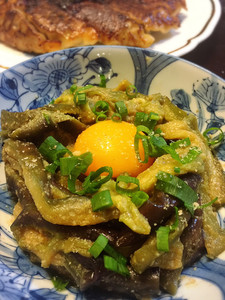 ・・・改めて、本当に普段ご飯すぎますが(笑)、「ナスのユッケ風」と「酔っ払い鷄のペペロンチーノ」です。